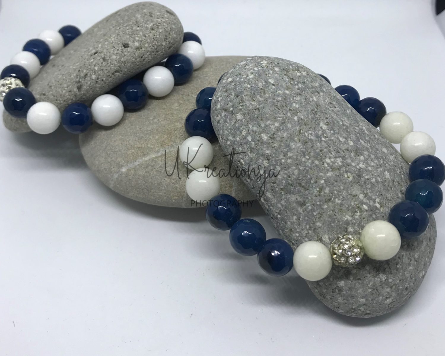Blue Zircon Fire and White Jade GEMSTONE BRACELETS