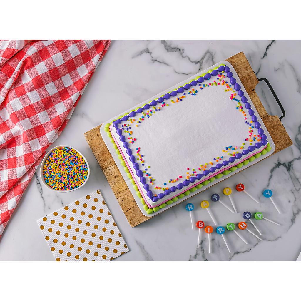 Enjoy this perfect combination in every bite, share with friends and family, and make every occasion sweeter and more special with this exquisite cake! Freshly Baked Vanilla Cake, ideal to accompany your special moments. Net Weight: 1.93 kg / 4.25 lb. Size: 20 to 24 slices. Product should be consumed once opened and before expiration date. Keep refrigerated. Contains allergens such as milk, wheat, eggs, soy and tartrazine. May contain nuts.